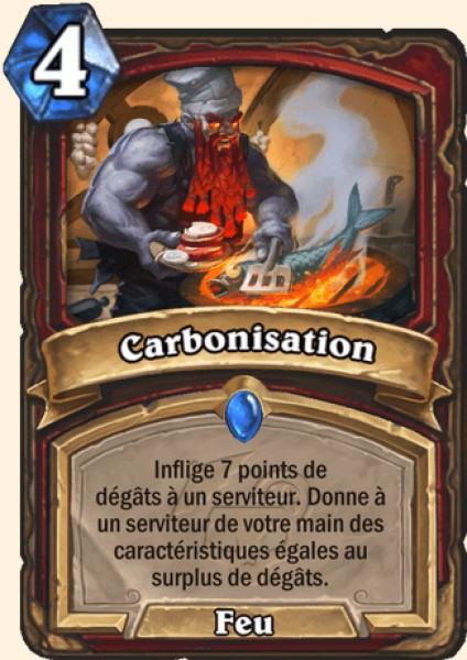 | Description | Inflige 7 points de dégâts à un serviteur. Donne à un serviteur de votre main des caractéristiques égales au surplus de dégâts. |