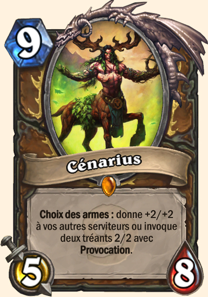 | Description | Choix des armes : donne +2/+2 à vos autres serviteurs ou invoque deux tréants 2/2 avec Provocation. |