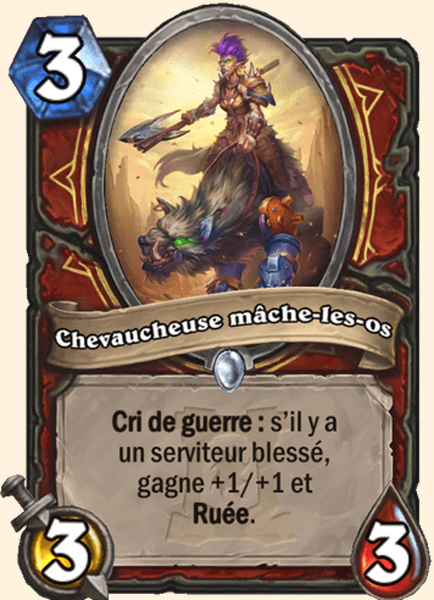 | Description | Cri de guerre : s’il y a un serviteur blessé, gagne +1/+1 et Ruée. |