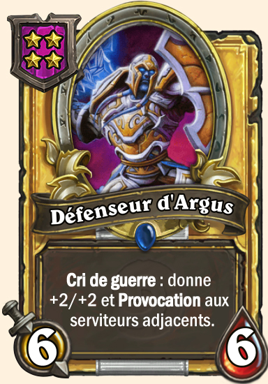 | Description | Cri de guerre : donne +1/+1 et Provocation aux serviteurs adjacents. |
