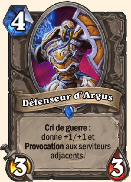 Description Cri de guerre : donne aux serviteurs adjacents +1/+1 et Provocation.