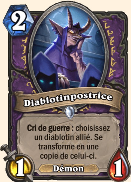 | Description | Cri de guerre : choisissez un diablotin allié. Se transforme en une copie de celui-ci. |