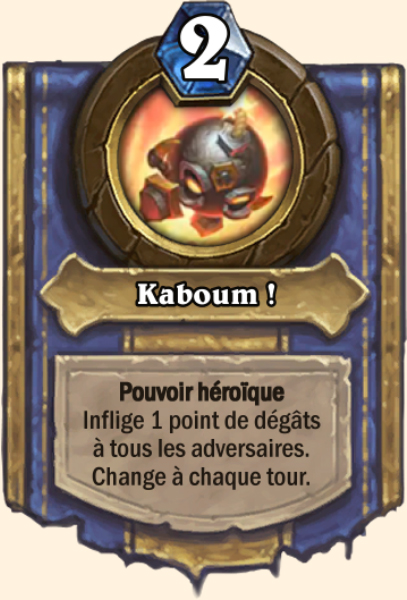 À chacun de vos tours, le pouvoir héroïque de Dr Boum, savant fou change aléatoirement et devient l'un des cinq ci-dessous. Il n'est pas possible d'avoir le même d'affilé.