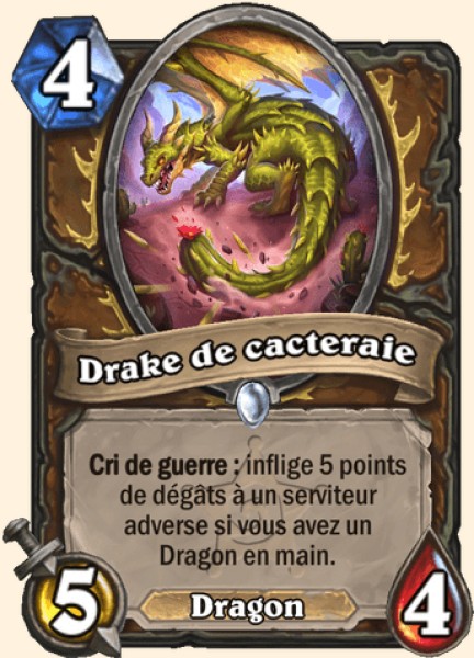 | Description | Cri de guerre : inflige 5 points de dégâts à un serviteur adverse si vous avez un Dragon en main. |