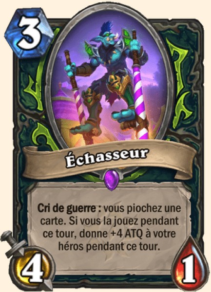 | Description | Cri de guerre : vous piochez une carte. Si vous la jouez pendant ce tour, donne +4 ATQ à votre héros pendant ce tour. |