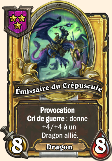 | Description | Provocation Cri de guerre : donne +2/+2 à un Dragon allié. |
