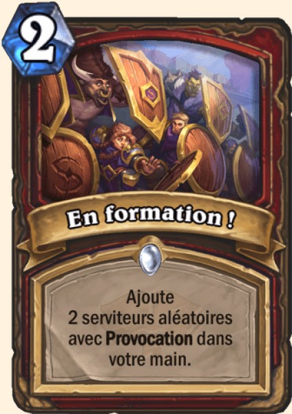 | Description | Ajoute 2 serviteurs aléatoires avec Provocation dans votre main. |