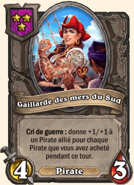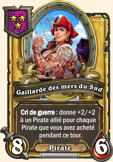 | Description | Cri de guerre : donne +1/+1 à un Pirate allié pour chaque Pirate que vous avez acheté pendant ce tour. |
