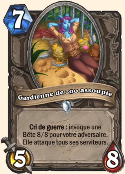 | Description | Cri de guerre : invoque une Bête 8/8 pour votre adversaire. Elle attaque tous ses serviteurs. |