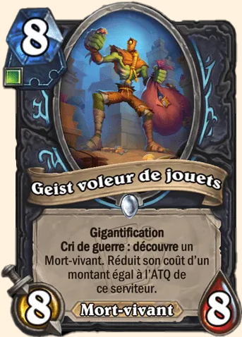 | Description | Gigantification Cri de guerre : découvre un Mort-vivant. Réduit son coût d’un montant égal à l’ATQ de ce serviteur. |