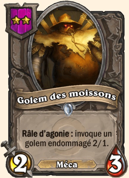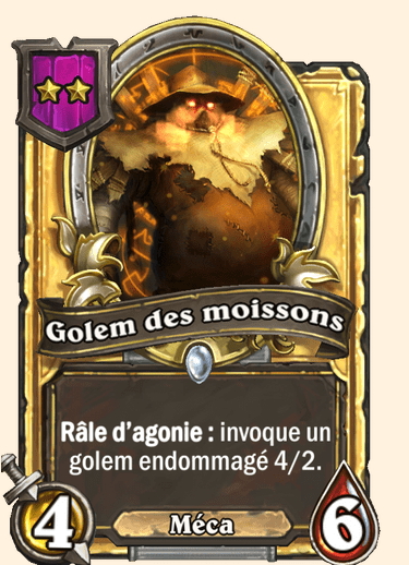 Lorsqu'il meurt, le Golem des moissons invoque une 2/1 Méca en version normale et une 4/2 Méca en version dorée :