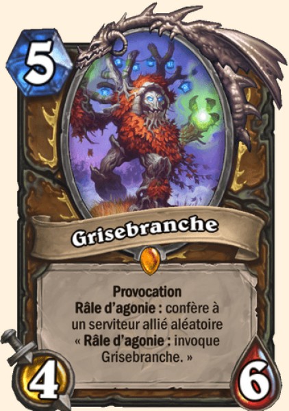 | Description | Provocation Râle d'agonie : confère à un serviteur allié aléatoire « Râle d'agonie : invoque Grisebranche ». |