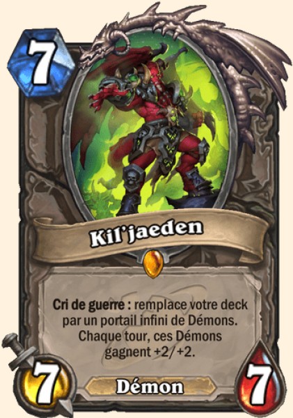 | Description | Cri de guerre : remplace votre deck par un portail infini de Démons. Chaque tour, ces Démons gagnent +2/+2. |
