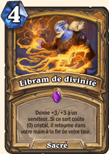 | Description | Donne +3/+3 à un serviteur. Si ce sort coûte (0) cristal, il retourne dans votre main à la fin de votre tour. |