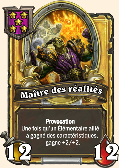 | Description | Provocation Une fois qu’un Élémentaire allié a gagné des caractéristiques, gagne +1/+1. |