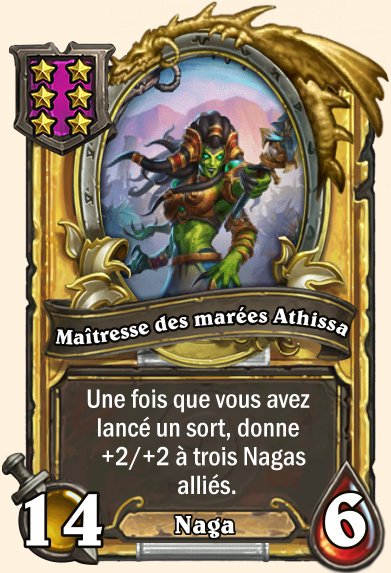 | Description | Une fois que vous avez lancé un sort, donne +1/+1 à trois Nagas alliés. |