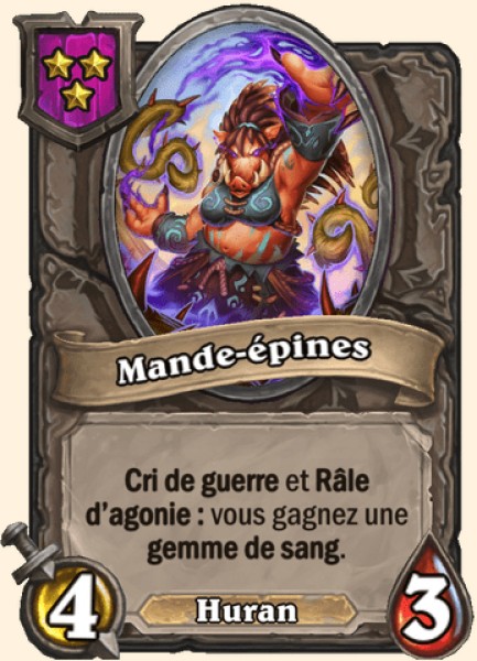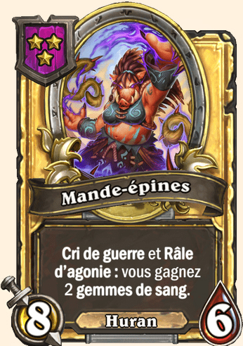 | Description | Cri de guerre et Râle d’agonie : vous gagnez une gemme de sang. |
