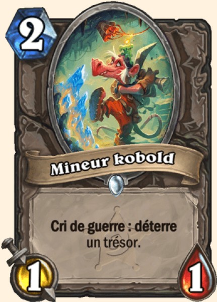 | Texte d'ambiance | Un mineur kobold coûtant 2 cristaux n’a quasiment pas de points de vie et donne des ressources… On se croirait dans Warcraft Rumble ! |