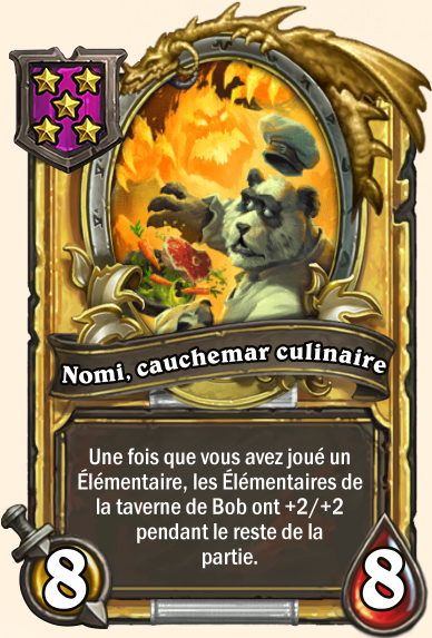 | Description | Une fois que vous avez joué un Élémentaire, les Élémentaires de la taverne de Bob ont +1/+1 pendant le reste de la partie. |