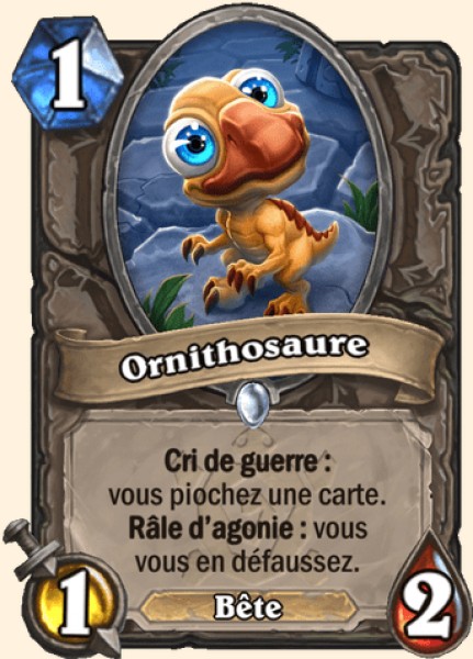 | Description | Cri de guerre : vous piochez une carte. Râle d’agonie : vous vous en défaussez. |