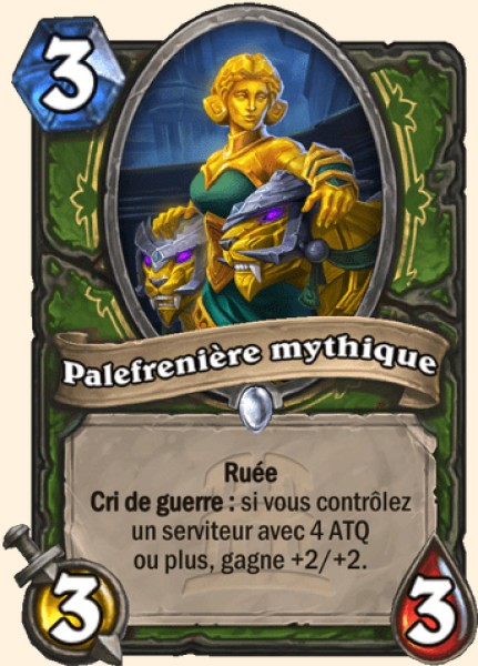 | Description | Ruée Cri de guerre : si vous contrôlez un serviteur avec 4 ATQ ou plus, gagne +2/+2. |