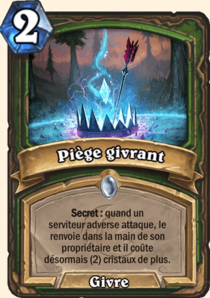 | Description | Secret : quand un serviteur adverse attaque, le renvoie dans la main de son propriétaire et il coûte désormais (2) cristaux de plus. |