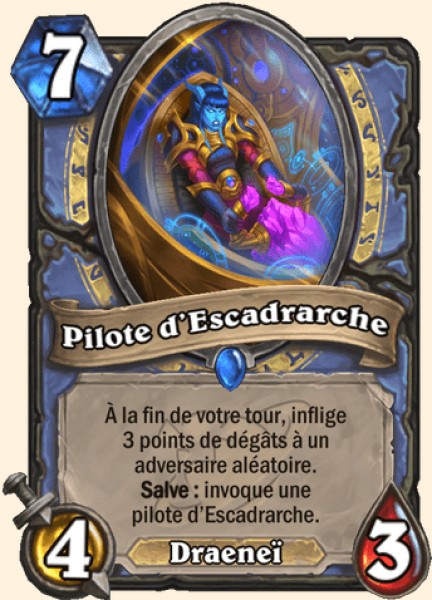 | Description | À la fin de votre tour, inflige 3 points de dégâts à un adversaire aléatoire. Salve : invoque une pilote d’Escadrarche. |