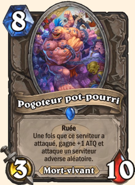 | Description | Ruée Une fois que ce serviteur a attaqué, gagne +1 ATQ et attaque un serviteur adverse aléatoire. |