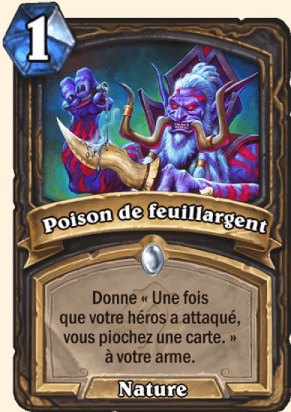 | Description | Donne « Une fois que votre héros a attaqué, vous piochez une carte. » à votre arme. |