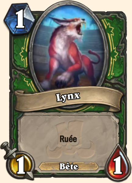 | Description | Ruée Cri de guerre : ajoute un Lynx 1/1 avec Ruée dans votre main. |
