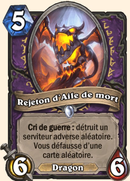 Description Cri de guerre : détruit un serviteur adverse aléatoire. Vous défausse d’une carte aléatoire.