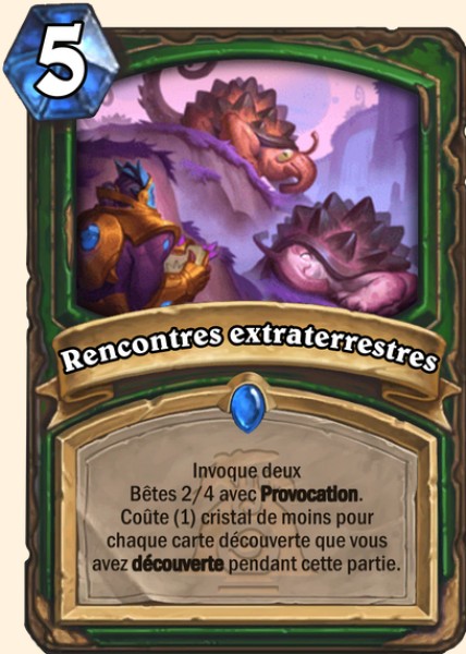 | Description | Invoque deux Bêtes 2/4 avec Provocation. Coûte (1) cristal de moins pour chaque carte découverte pendant cette partie. |
