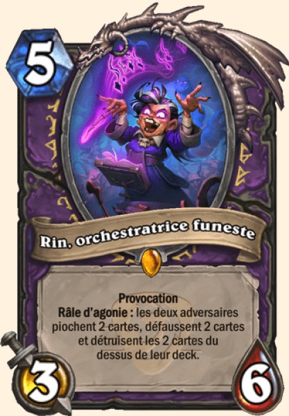 | Description | Provocation Râle d'agonie : les deux adversaires piochent 2 cartes, défaussent 2 cartes et détruisent les 2 cartes du dessus de leur deck. |