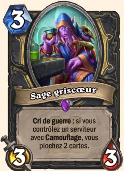 | Description | Cri de guerre : si vous contrôlez un serviteur avec Camouflage, vous piochez 2 cartes. |