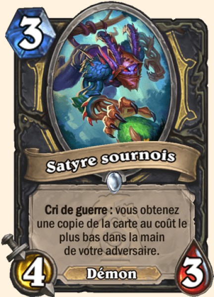 | Description | Cri de guerre : vous obtenez une copie de la carte au coût le plus bas dans la main de votre adversaire. |