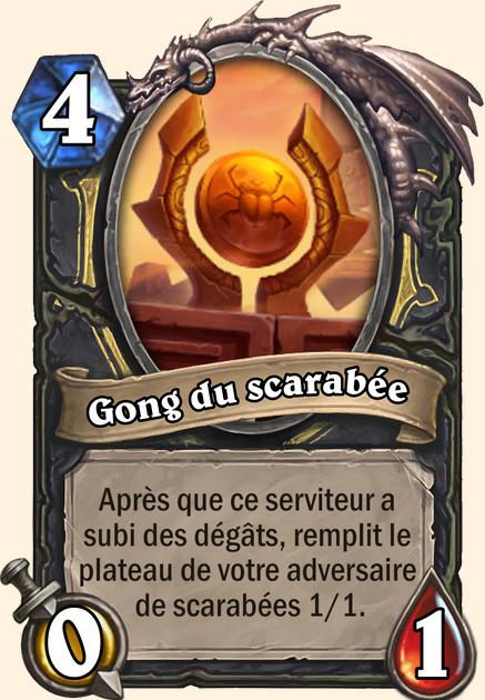 | Description | Cri de guerre : invoque un gong 0/2 pour votre adversaire. Combo : gagne Ruée. |