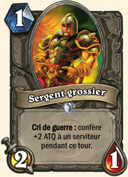 | Description | Cri de guerre : confère +2 ATQ à un serviteur pendant ce tour. |