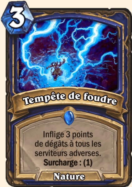 | Description | Inflige 3 points de dégâts à tous les serviteurs adverses. Surcharge : (1) |