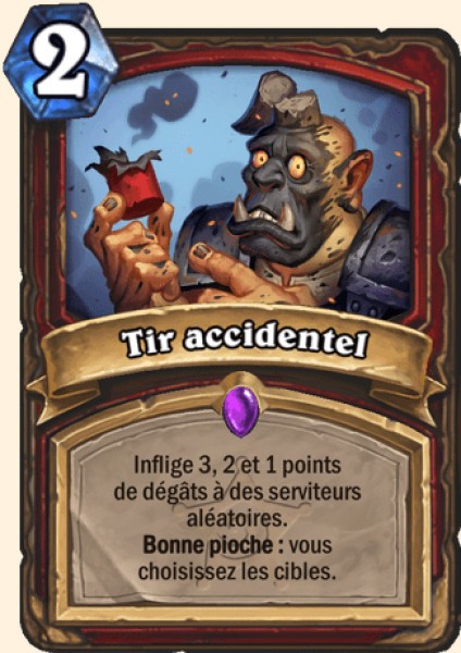 | Description | Inflige 3, 2 et 1 points de dégâts à des serviteurs aléatoires. Bonne pioche : vous choisissez les cibles. |