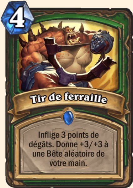 | Description | Inflige 3 points de dégâts. Donne +3/+3 à une Bête aléatoire de votre main. |