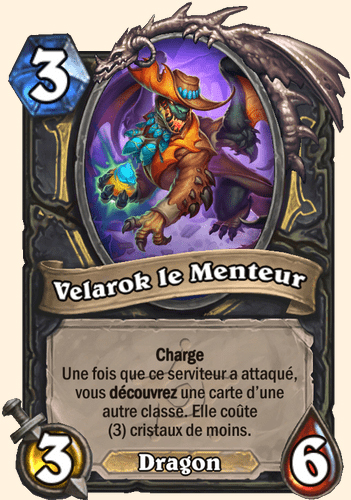 | Description | Tant que vous avez cette carte dans votre main, jouez une carte d’une autre classe pour révéler la véritable nature de Velarok ! |
