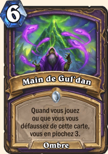 Main de Gul'dan : vous pouvez la remplacer par soit un Poing de Jaraxxus soit par un Barrage d'âmes mais ce sera un peu moins puissant et vous vous risquer de vous retrouver la main vide.