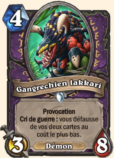 Il y a quelques jours, Gul'dan s'est levé de bonne heure, pour ouvrir les boosters Un'goro qu'il avait achetés. Il était très impatient ! Il avait passé la nuit a imaginé des decks qu'il pourrait construire : un guerrier provocation, un mage otk, etc... Quelle ne fut sa déception quand, dans les 150 paquets qu'il avait acheté avec ses économies, il ne trouva que le Sacrifice lakkari. (Et la Grotte des profondeurs mais il la désenchanta en pensant que c'était vraiment de la merde). Après ça, malgré son désespoir, il eut la merveilleuse idée de....créer un deck avec cette terrible quête