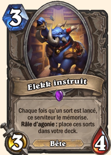 Comment ça t'as plus de cartes ? Grâce à Elekk instruit tu peux atteindre la fatigue en même temps, voir après ton adversaire. Essayez de le placer quand vos sort sont déjà réduits. Mais faites gaffe aux Prêtres, Mages, Chamans qui peuvent vous le silence de bien des façons. Si vous êtes vraiment pas serein détruisez-le vous même avec vos sorts.