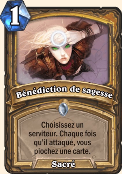 Le deck joue Bénédiction de sagesse car c'est le meilleur sort de pioche dans ce deck, il fait piocher entre 1 et 4 cartes par parties ce qui est super fort pour 1 mana !