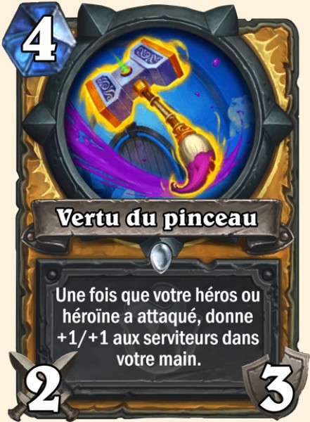 Paladin : Vertu du pinceau est clairement l'une des armes la plus forte de la méta actuelle. Combiné avec Amitus la Garde-paix et la Tigresse en peluche, Paladin nous offre des compositions TRES solides pour cette saison. Autant dire que notre deck Attrition ne performe vraimetn pas beaucoup. Match-up TRES défavorable.