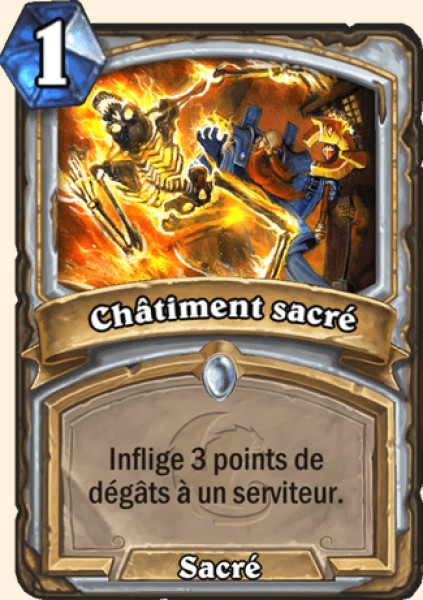 Châtiment sacré - Rang A Le châtiment sacré est simple et efficace. Ce sort brille en early et peut aider plus tard sans gâcher votre courbe de mana. Dans l’ensemble, c’est une carte à faible impact et ce n’est jamais un mauvais choix.