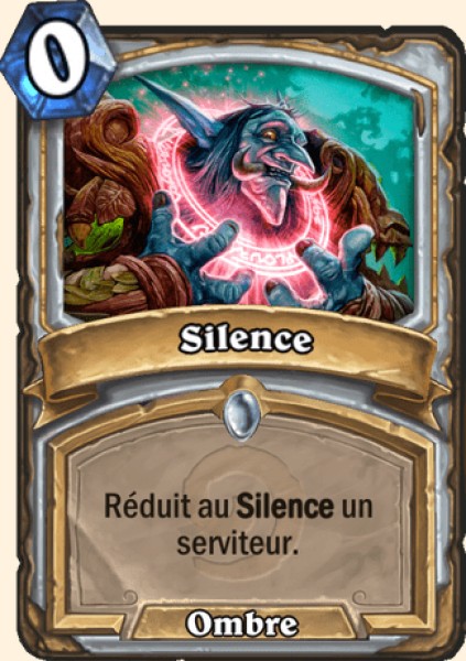 Silence - Rang E Le silence est utile sur un serviteur. Cependant, ce n’est pas ce que l’on souhaite voir sur une carte seule et ça ne vaut pas le coup de choisir une carte rien que pour cela.
