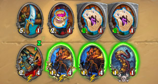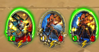 Les cartes infligeant 1 points de dégât de type Éventail de couteaux, Tourbillon, Goule ravageuse, Tentacule de N'Zoth ou bien encore Mande-flamme du Crépuscule seront privilégiées et nettoieront rapidement le plateau si vous vous retrouvez submergés de serviteurs adversaires.