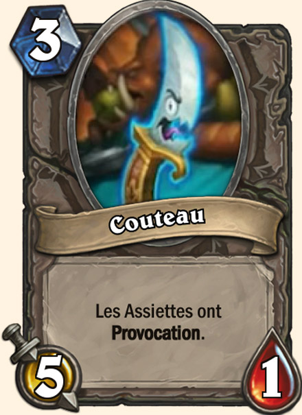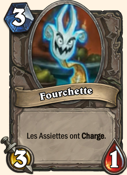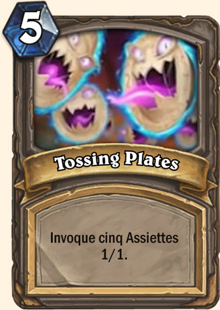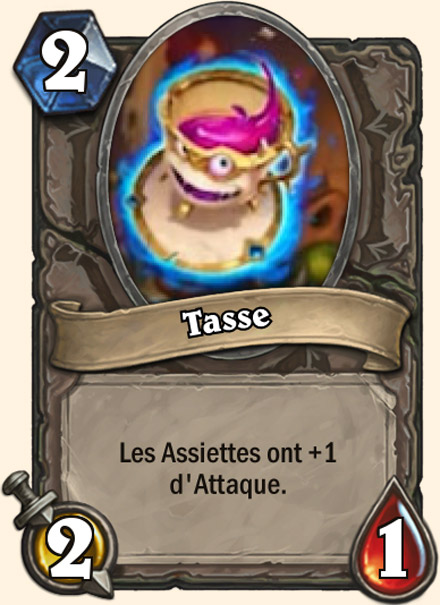 En mode normal, Le Golem d'argenterie, a la capacité d'invoquer un serviteur nommé Assiette une 1/1 grâce à son pouvoir héroïque (deux assiettes en héroïque). La particularité du boss est de renforcer ses assiettes grâce à trois cartes qui lui sont propres :